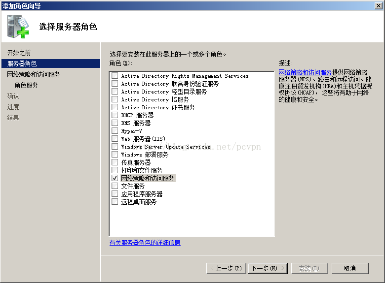 1.4、在“角色”里选择“网络策略和访问服务”,点击“下一步”