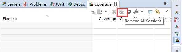 或者点击window–>Show view –> Other –> Java–>Coverage–>Open 点击如上图空色小框即可。