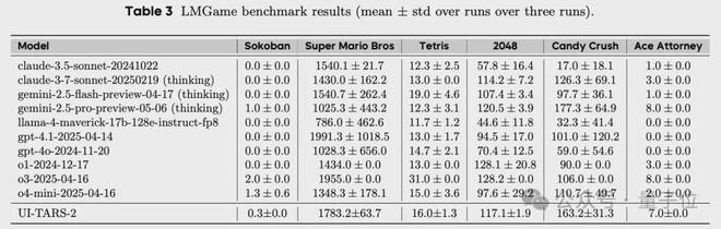 他们从poki.com挑选14款游戏进行测试,通过标准化评分,UI-TARS-1.5在与OpenAI CUA、Claude 3.7的对决中胜出。