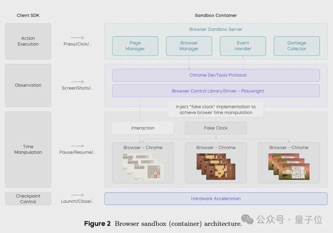 最后,团队还开发了统一的沙盒平台,以标准化API管理云端VM、浏览器游戏沙盒等异构环境,支撑数百万次交互的大规模训练与评估。