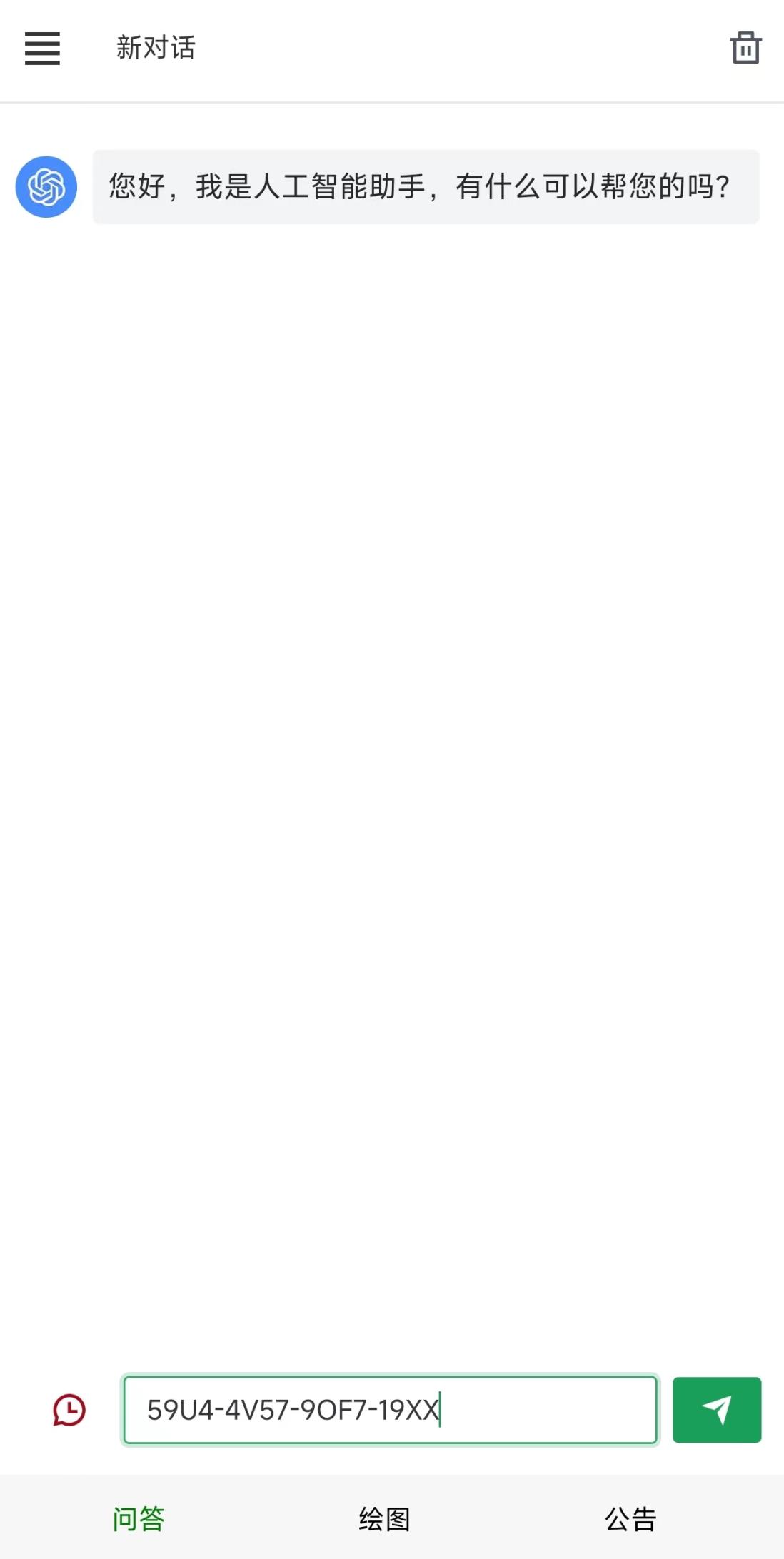 请在新智Ai问答界面对话框中输入体验码,点击发送即可领取