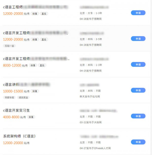 工资方面:在网上随意搜索C语言开发工程师的工资,月薪至少是8K起步,大部分至少可达到12K,从长远来看,工资会有所提升。