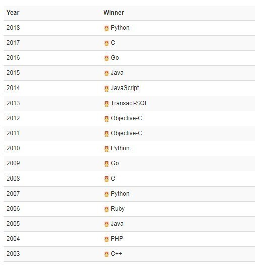编程语言“名人榜”( 2003-2018):