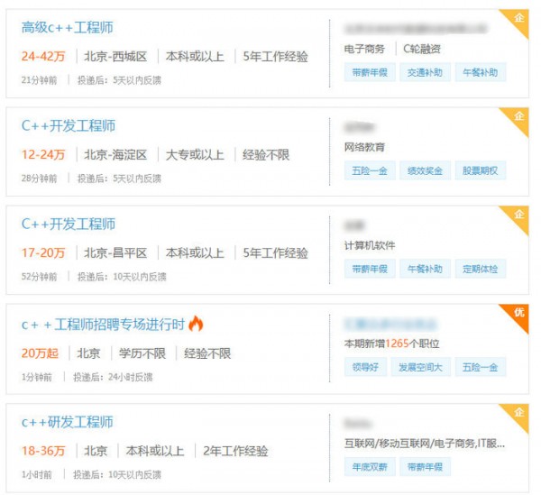 下面是C++开发求职年薪,整体来说是非常不错的