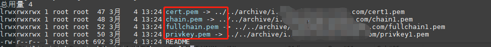 生成之后我们会在/etc/letsencrypt/live/x.域名.com目录下找到我们生成的证书