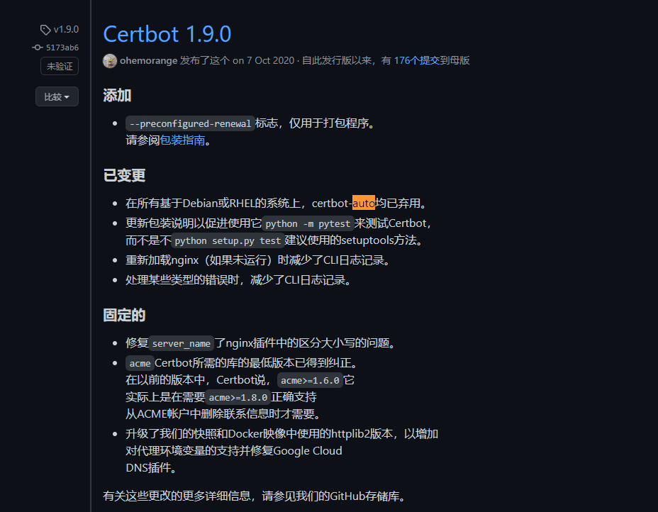去certbot官方github上https://github.com/certbot/certbot/releases查了一下原因