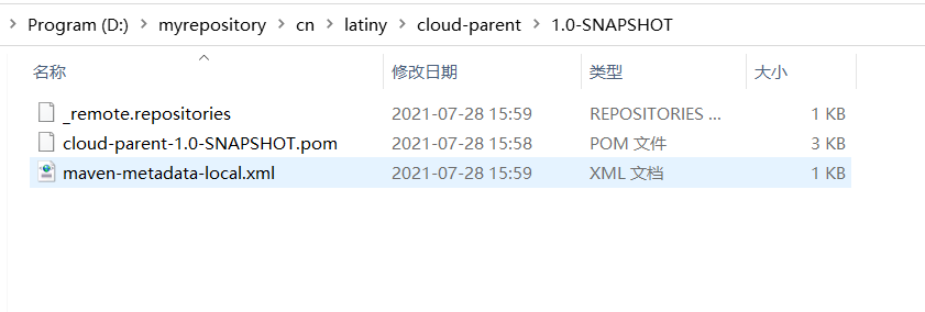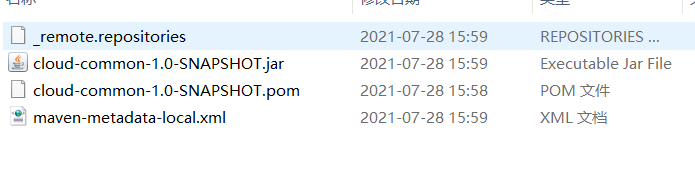 这里面没有jar包,只有pom结尾的文件,因为父工程没有具体的代码。但是一旦打包成功,可以在其他项目引用该父工程的引用,PS:必须与父工程公用一个本地仓库。