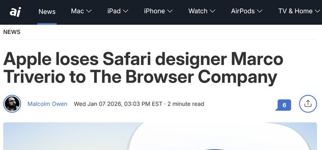 【环球网科技综合报道】1月8日消息,据Applelnsider报道,The Browser Company首席执行官乔希·米勒(Josh Miller)于近日在社交平台X及领英(LinkedIn)正式宣布,苹果Safari浏览器前首席设计师马尔科·特里维里奥(Marco Triverio)已加盟该公司。